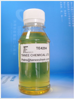 TE4204复合剂是最新开发研制的通用齿轮油复合剂。在石蜡级原油生产的基础油中,以4.5%-4.8%的加剂量调制的等级为GL-5、粘度级别为80W/90的车辆齿轮油,通过了CRC L-42、CRC L-33、CRC L-37和CRC L-60等台架试验。TE4204以1.6%的加剂量调制的320号重负荷工业齿轮油,符合美钢USS-224规格指标。
